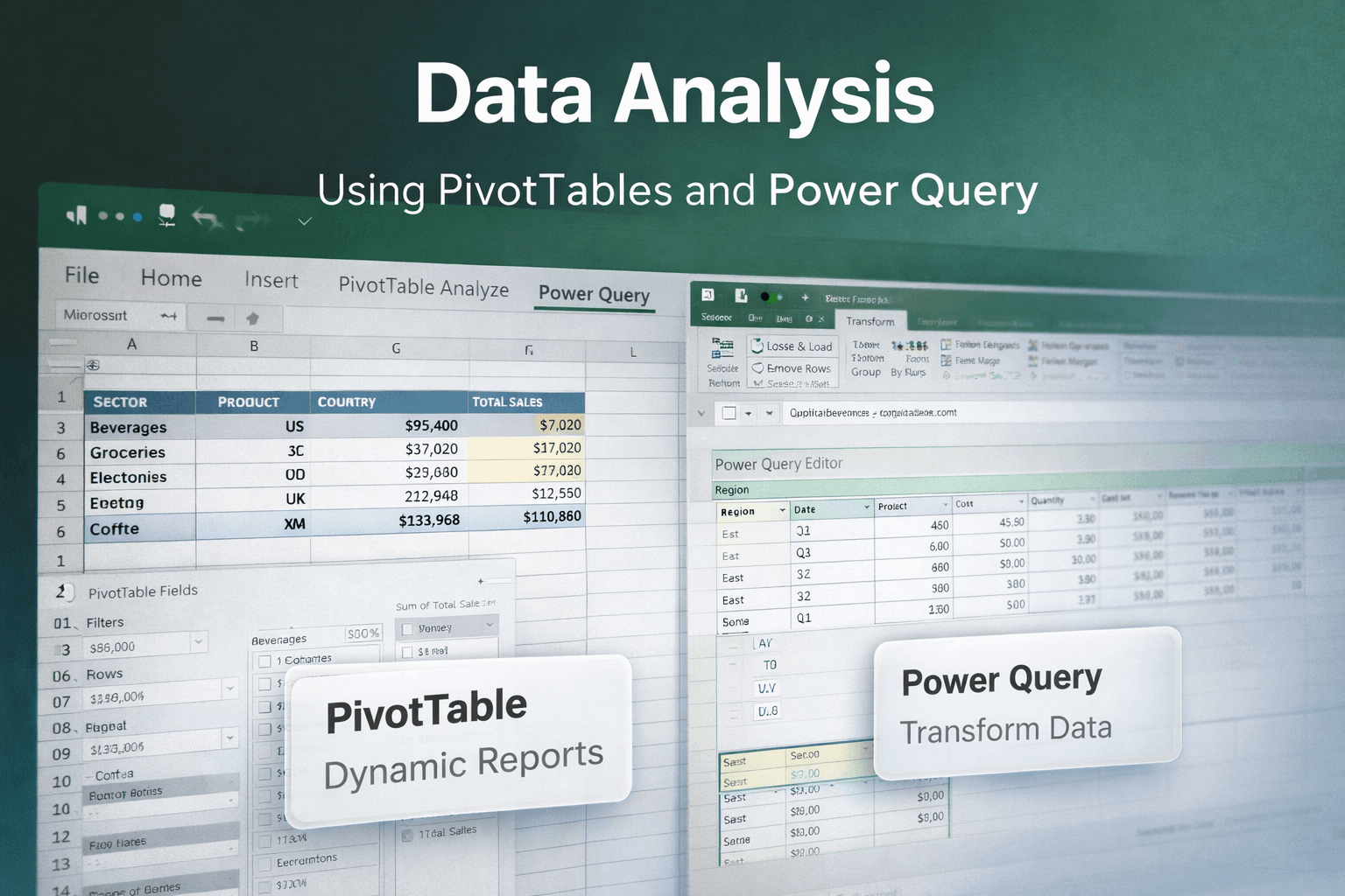 - Data analysis with PivotTables and Power Query